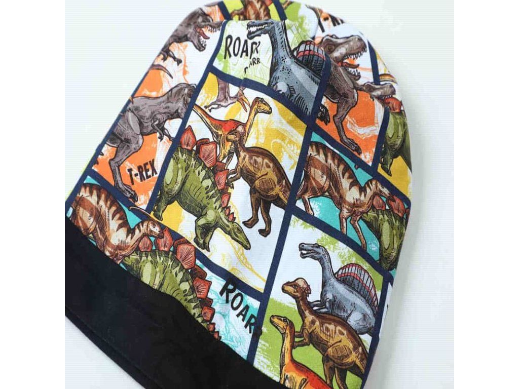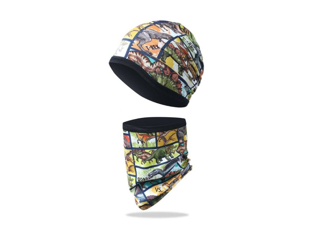 - Set čepice s nákrčníkem - hravý motiv T-REX pro děti
