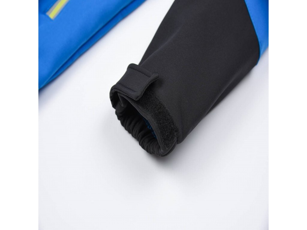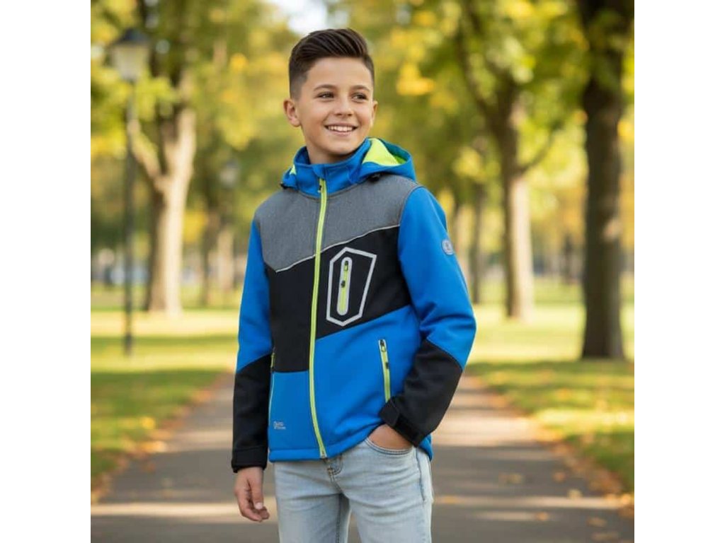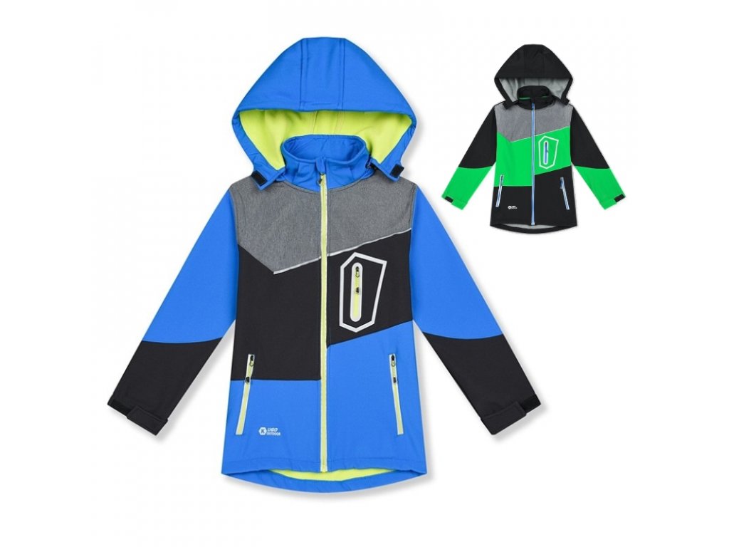 Softshellová, chlapecká bunda z měkkého materiálu nepromokne, neprofoukne a fleecová podšívka dobře zahřeje. Zip je podšit látkou a chrání bradu proti odření zipem. /zipová garáž/ Dvě funkční kapsy pro ruce na zipy. Zadní část je šitá do mírného šosu, asi o 4 cm delší než díl přední a výborně zabezpečí prochladnutí zádové části těla. Kapuce je s možností odepnout zipem a na stažení olivkou k hlavě, což oceníte při nepříznivém počasí. Rukávy jsou do gumy a na stažení suchým zipem, díky tomu tak rukávy nepřepadávají. Reflexní prvky jsou samozřejmostí pro větší bezpečnost dětí. Bunda je ideální pro volný čas i pro sportovní vyžití do města i do školy.