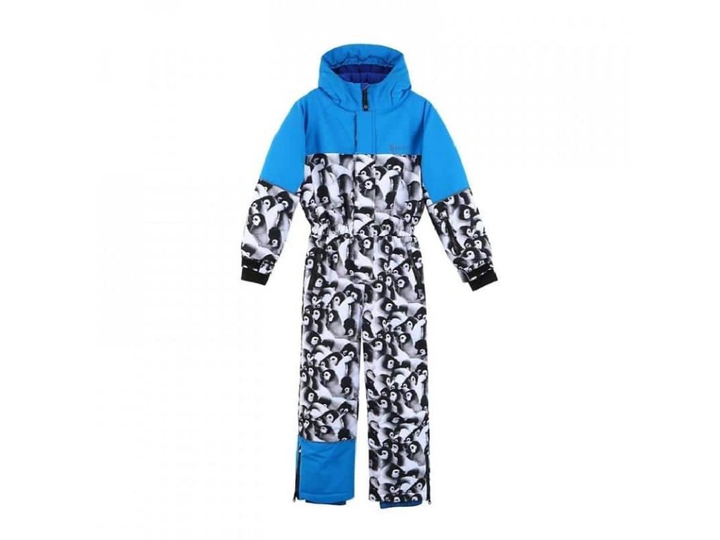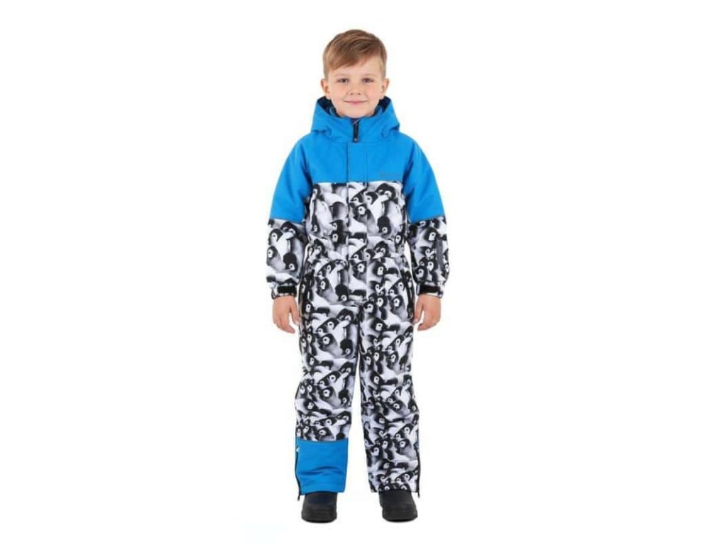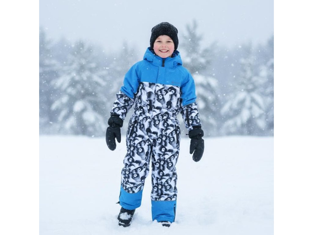 Chlapecká zimní kombinéza s tučňáky v kombinaci modré barvy – pohodlí, teplo a bezpečí v jednom
