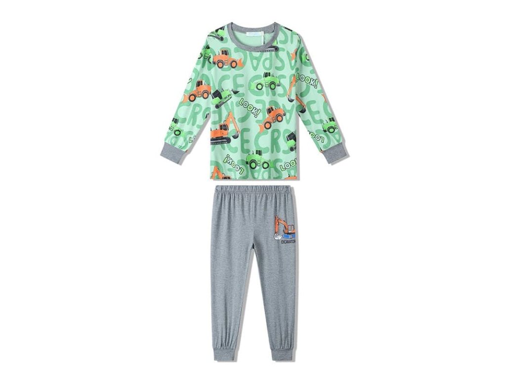 Chlapecké pyžamo s motivem strojů a nakladačů je perfektní volbou pro malé fanoušky techniky a velkých kol. Díky hravému potisku stavebních strojů si ho kluci zamilují nejen na spaní ve školce, ale i na večerní pohodu doma.