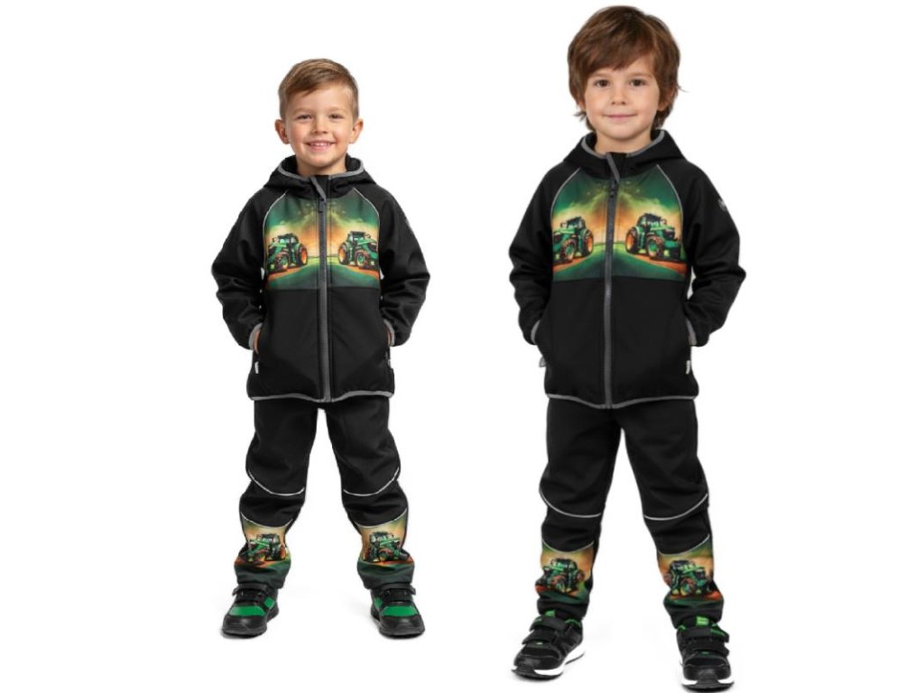 - Styl, který kluky baví – oblíbený motiv traktoru na bundě i kalhotách