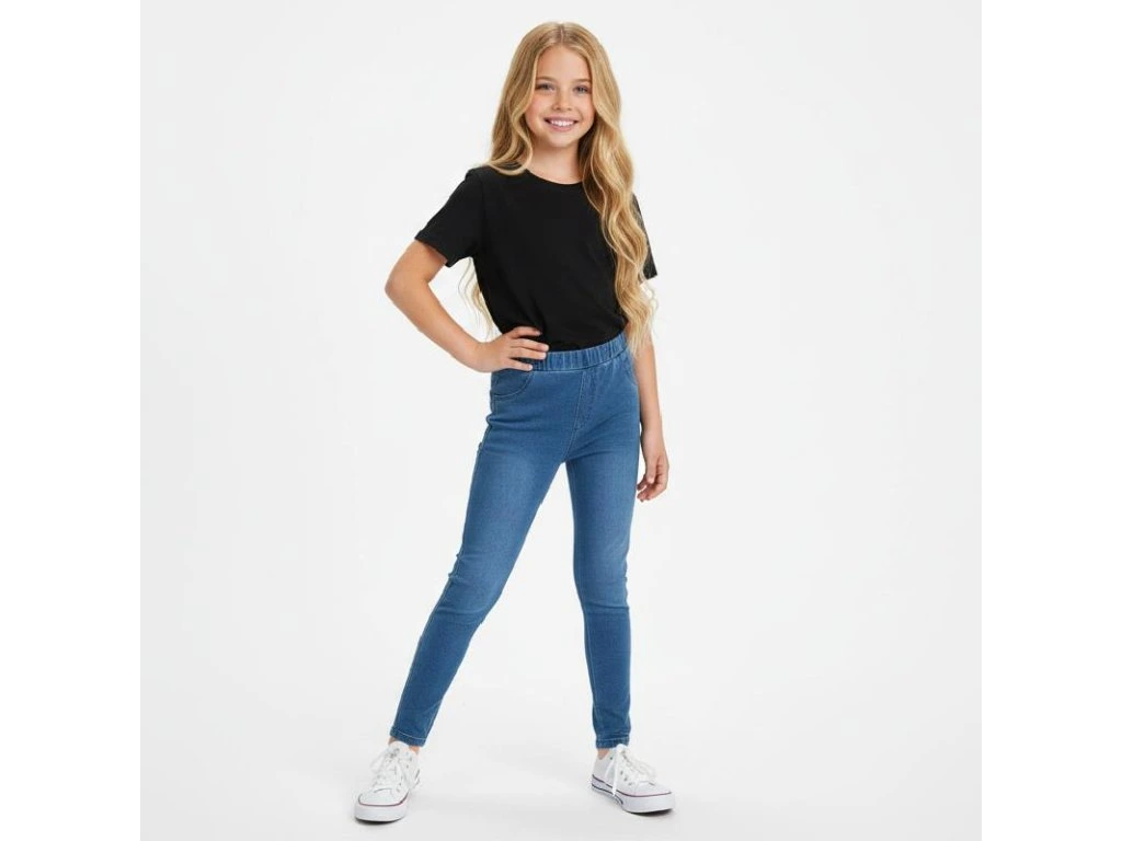 Dívčí legíny v imitaci riflí neboli džegíny jsou skvělou volbou pro všechny holky, které chtějí vypadat stylově a zároveň se cítit pohodlně. Díky pružnému a elastickému materiálu se legíny dokonale přizpůsobí postavě a neomezují v pohybu – ideální na školu, hřiště i volný čas.