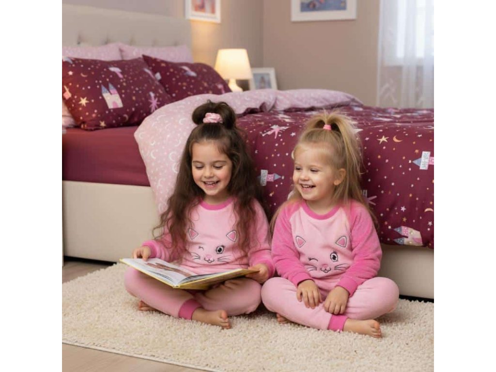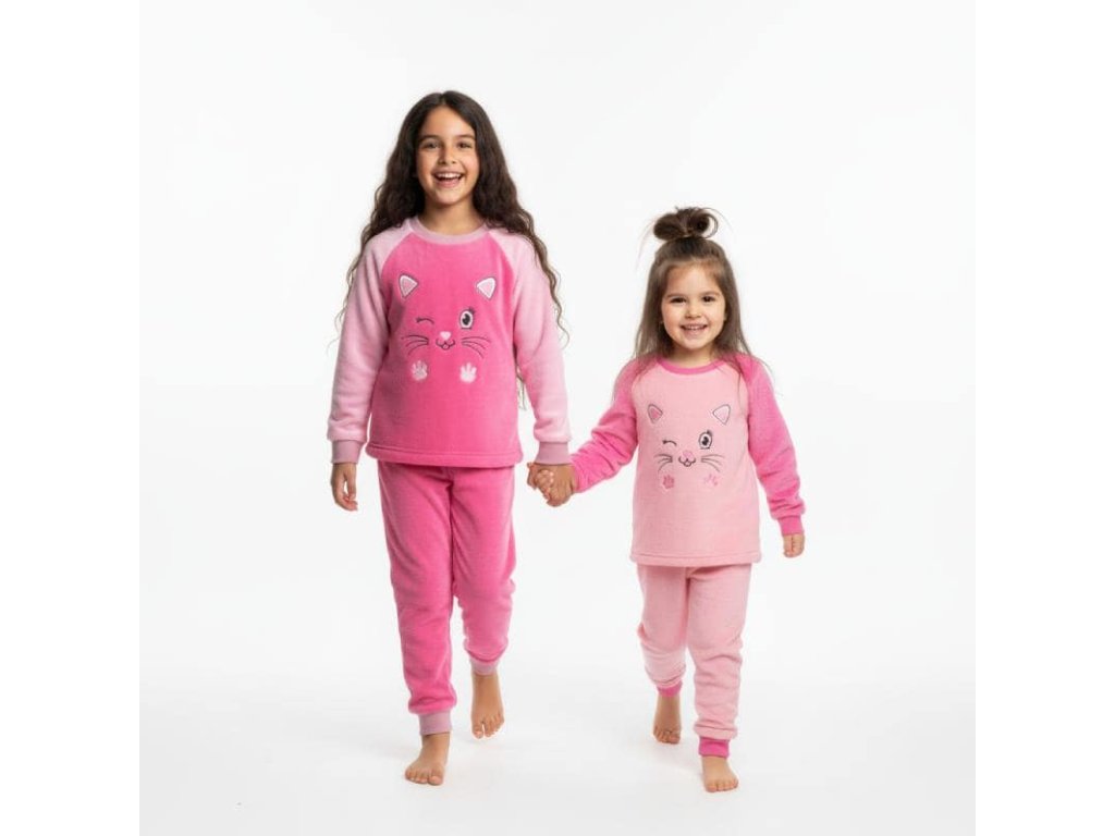 Dívčí teplé chlupáčkové pyžamo s kočičkou je ideální volbou pro všechny slečny, které milují pohodlí, hebkost a roztomilý design. Pyžamko je vyrobené z mimořádně jemného a hřejivého chlupáčkového materiálu, který zahřeje i v těch nejchladnějších dnech.
