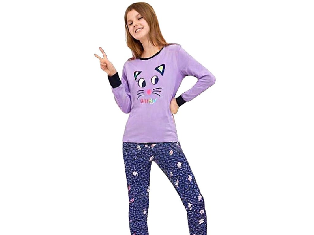 Roztomilý kočičí motiv potěší každou milovnici zvířat. Pyžamo je navrženo pro dívky juniorského věku, které chtějí nejen pohodlí, ale i styl. Vypadá skvěle a zároveň poskytuje naprostou volnost pohybu.
