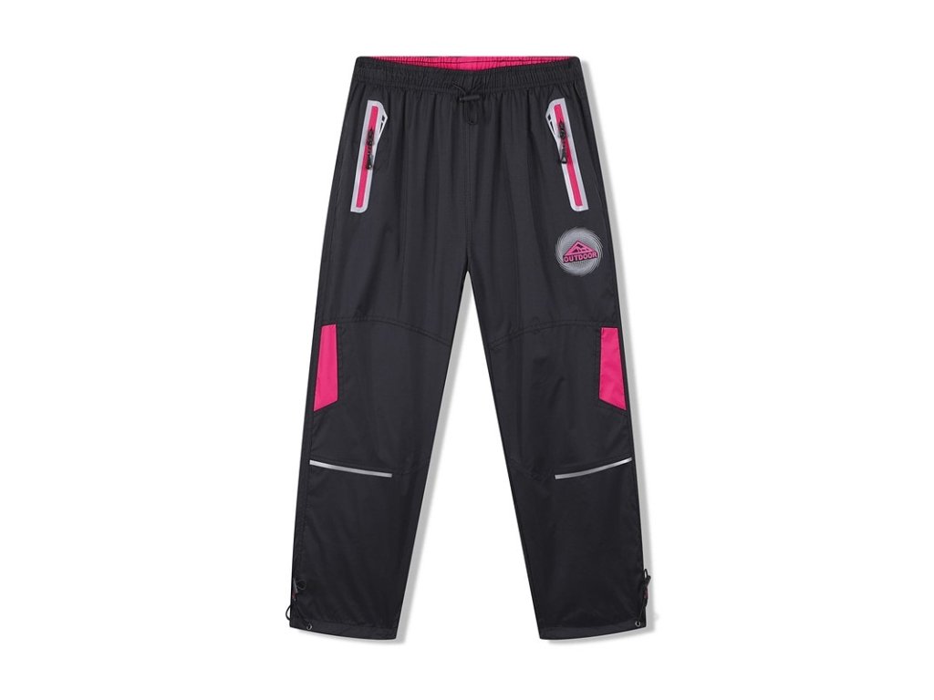 Lehké a praktické dětské dívčí kalhoty, ideální na jaro, léto i podzim. Vyrobené z voděodolného materiálu, který ochrání před vlhkostí i větrem. Pas do gumy s olivkou umožňuje snadné přizpůsobení obvodu a stahování nohavic zajišťuje pohodlné nošení i při pohybu v přírodě či na hřišti.
