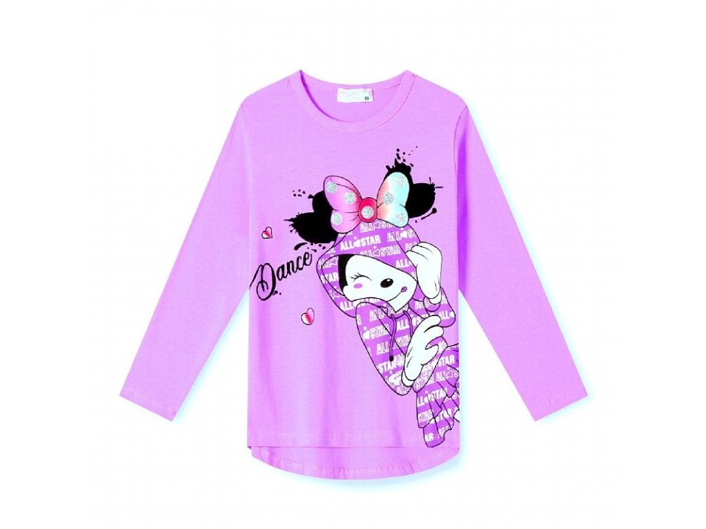 Dívčí, bavlněné tričko s dlouhým rukávem s oblíbeným obrázkem myšky , co slečny milují. Materiál je velice příjemný na omak i na tělo a jeho složení je 95ˇbavlna a 5% elastan. Při tomto složení je tričko velice pružné a zachovává stálý tvar.