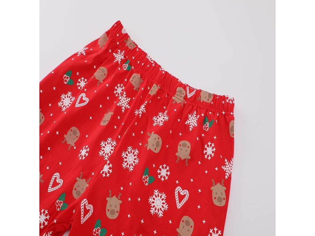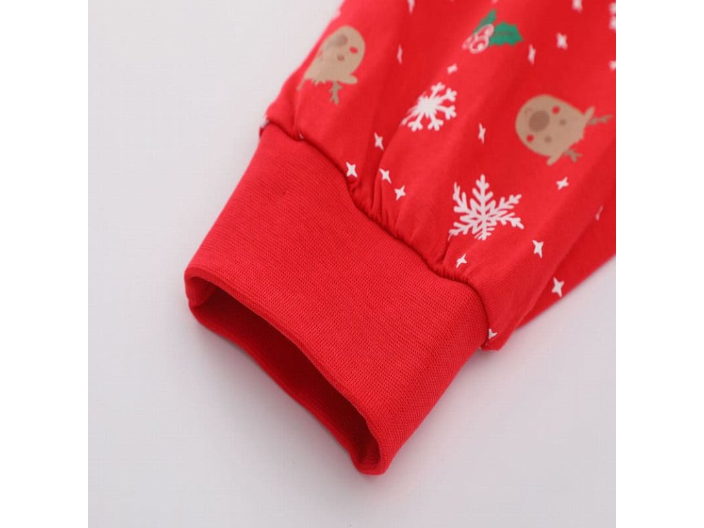 Pyžamko má rukávy i nohavice zakončené do nápletu, takže krásně drží tvar, nevyhrnuje se a udržuje teplo i během chladných zimních večerů. Díky volnému střihu se v něm děti mohou bez omezení protahovat, hrát si nebo užívat vánoční pohodu při pohádkách.