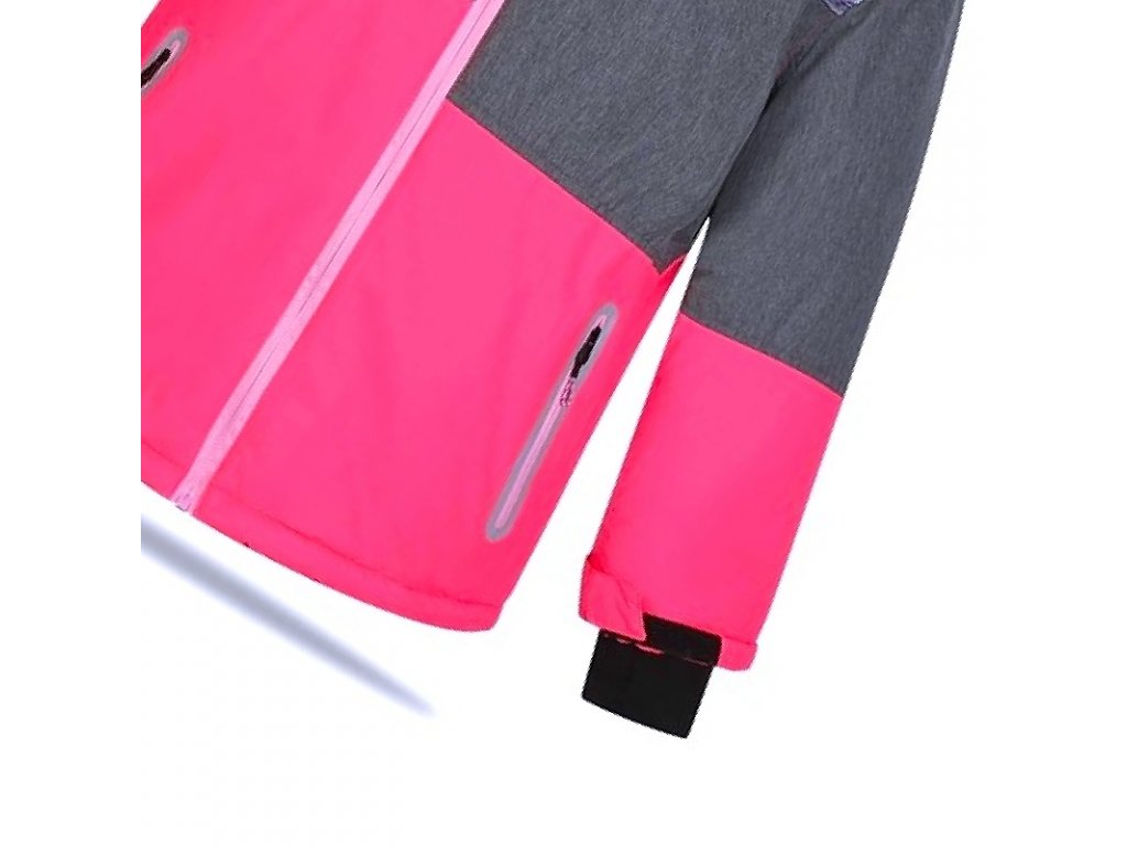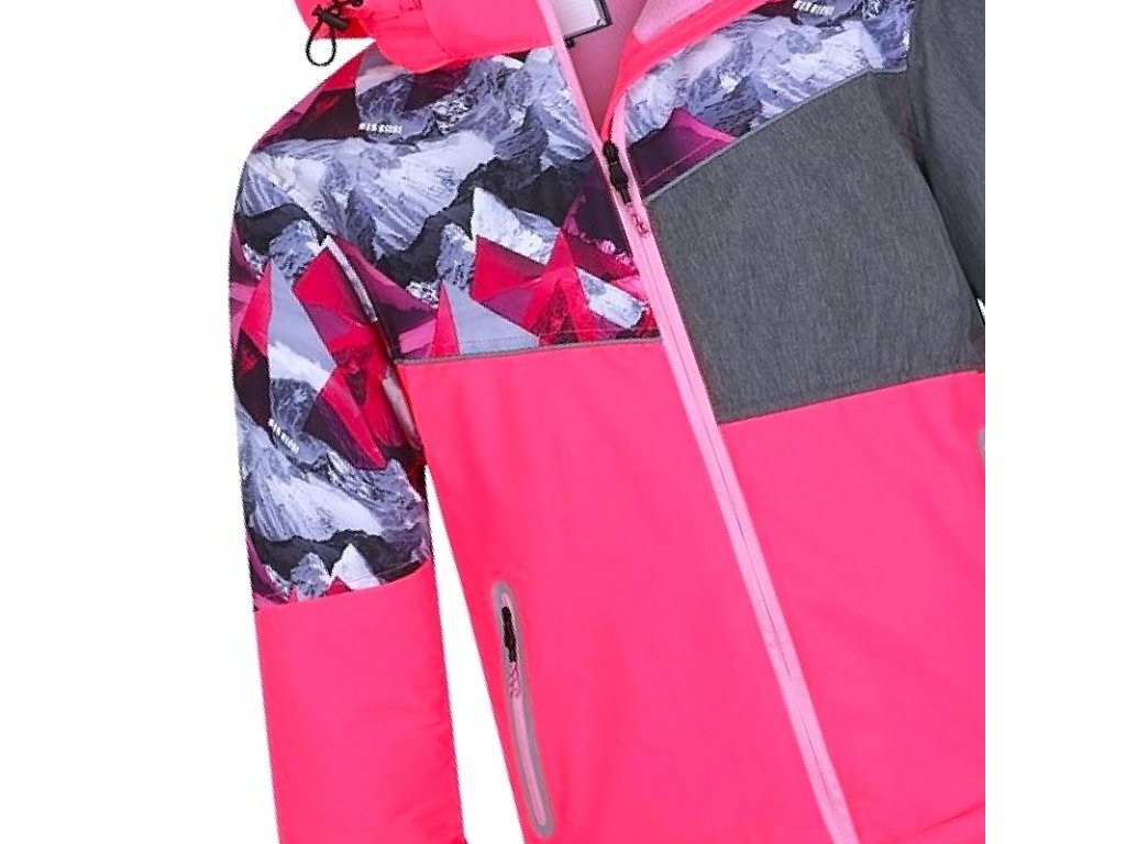 Zimní dětská bunda z pevného šusťáku, zateplená a podšitá flísem, z nepromokavého materiálu, který je odolný vůči sněhu i dešti. Bunda má odepínací kapuci na zip, olivky na stažení kapuce k hlavě. Suché zipy na kapuci slouží k přidělání kapuce do límce, tudíž kapuce neplandá. Regulace rukávu je zajištěna suchým zipem. Bunda je vybavena sněhovým pásem, kapsami na zip opatřené delšími tkaničkami pro lepší manipulaci v rukavicích. Záda jsou šitá do mírného šosu a jsou o 4cm delší než díl přední. Podšívka je na zadním dílu, přední díl a kapuce jsou podšity flísem, rukávy mají podšívku z nylonu pro snadné oblékání. Skvělá volba na zimní sezónu.