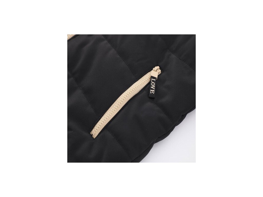 Dívčí zimní šusťákový kabát černý s béžovým kožíškem - hřejivý společník do mrazivých dní