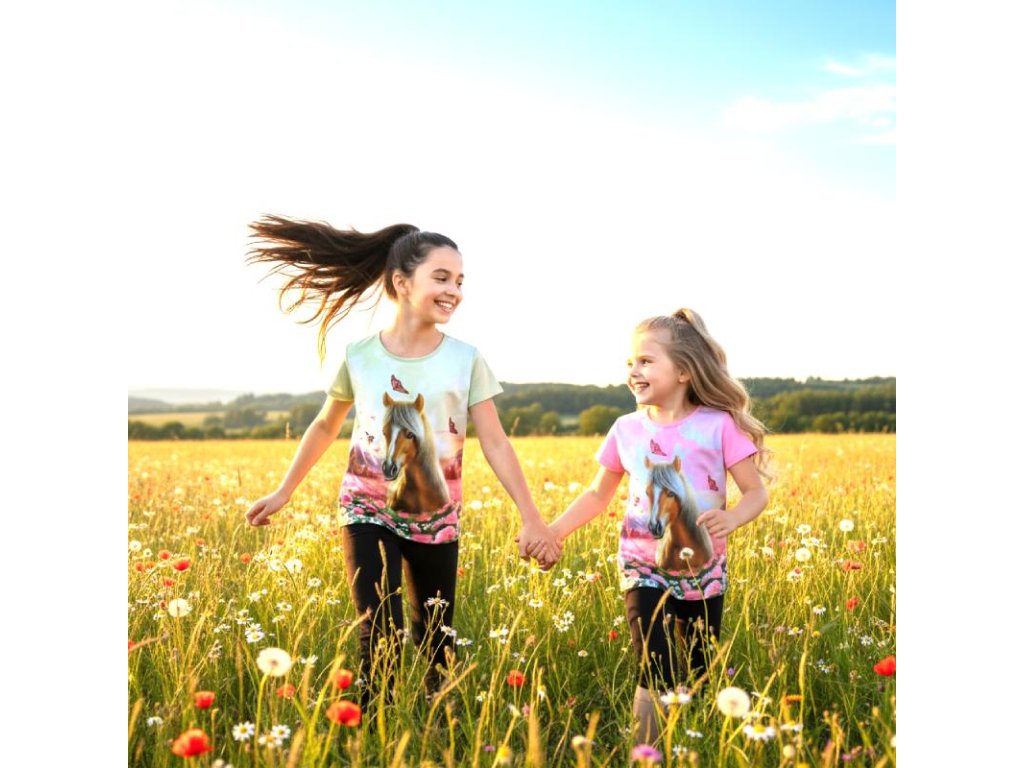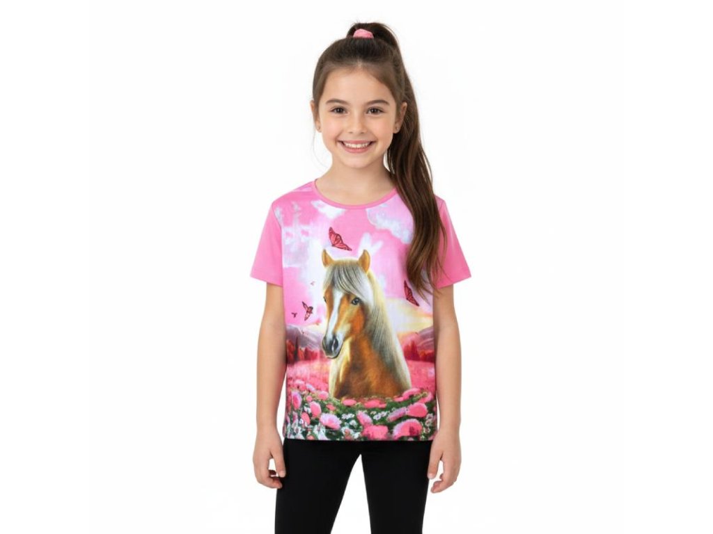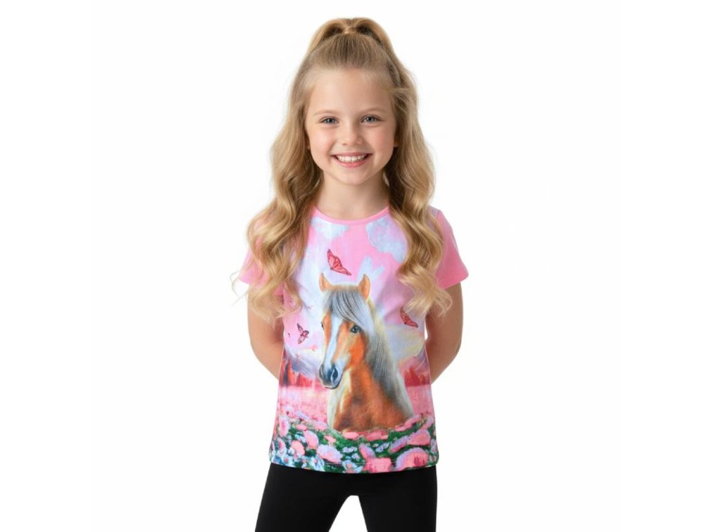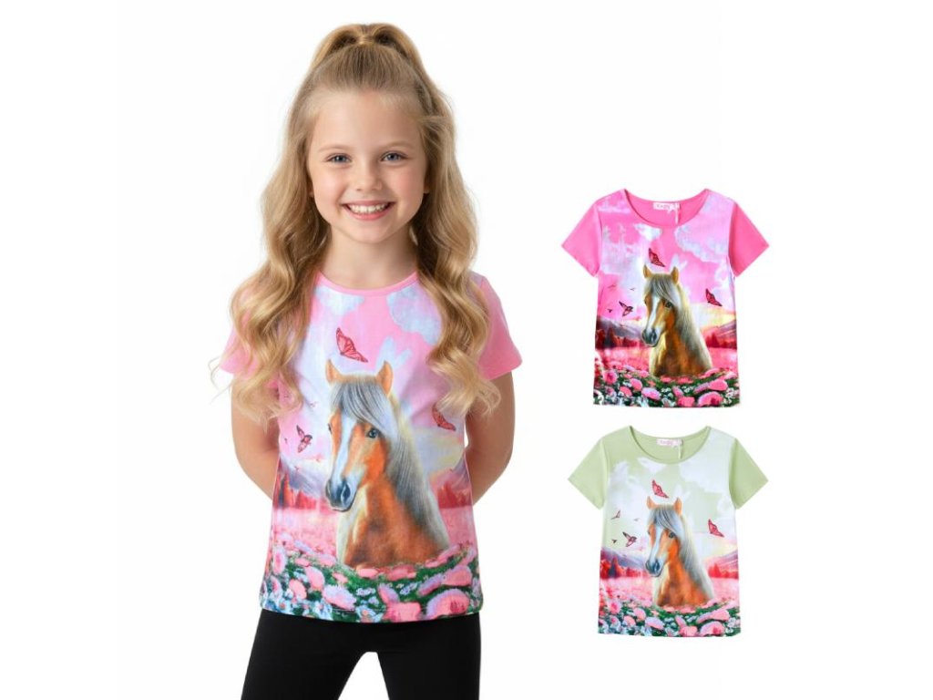 DÍVČÍ TRIČKO S KRÁTKÝM RUKÁVEM A KONĚM ST3579