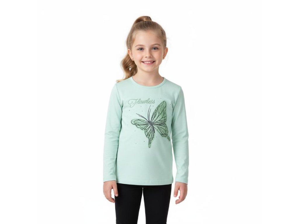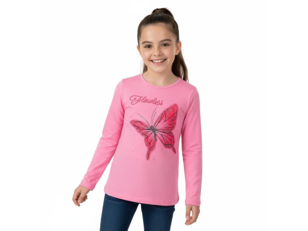 Dívčí tričko s dlouhým rukávem s motýlem a třpytivými kamínky