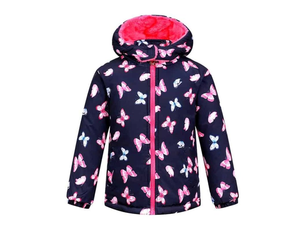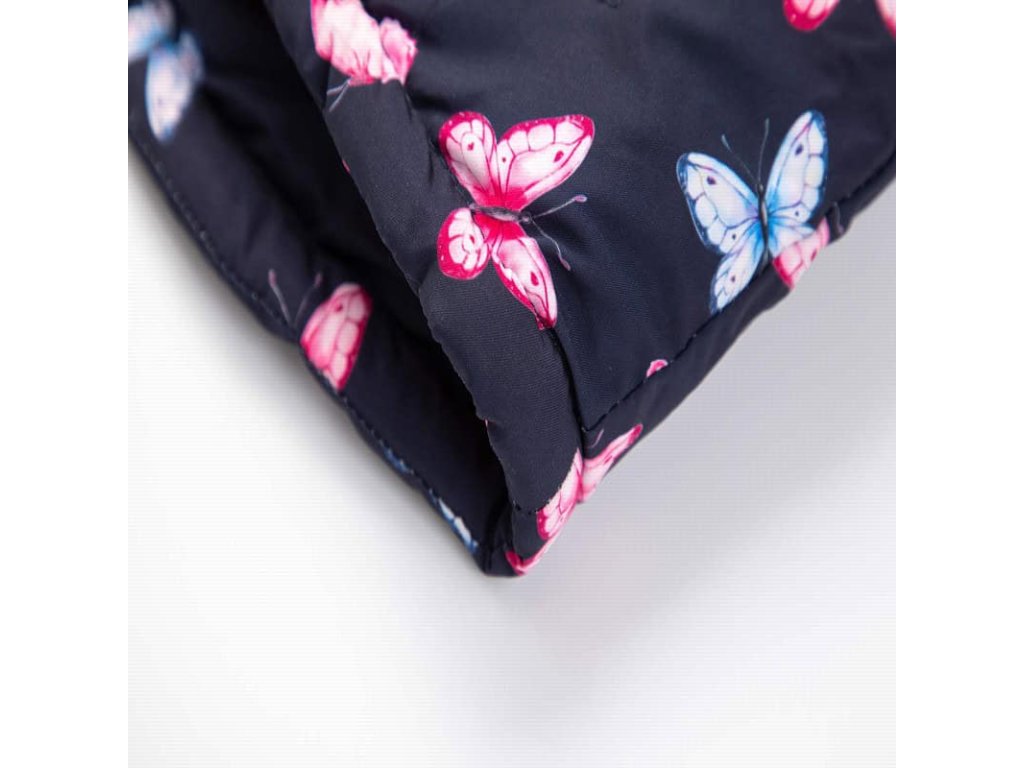 Pokud hledáte moderní dětskou zimní bundu, tento kousek si vaše holčička určitě zamiluje. Originální potisk s motýlky dodává bundě veselý a hravý vzhled.